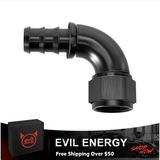 The EVIL ENERGY 90° Push Lock Hose Fitting is designed for high-performance fuel systems where smooth flow and durability matter most. Its one-piece full flow construction with thickened curvature minimizes restrictions, ensuring reliable fuel delivery even under high pressure.