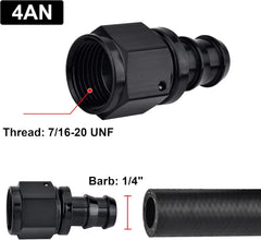4AN: 1/4" Barb, Thread 7/16-20 UNF 6AN: 3/8" Barb, Thread 9/16-18 UNF 8AN: 1/2" Barb, Thread 3/4-16 UNF 10AN: 5/8" Barb, Thread 7/8-14 UNF |