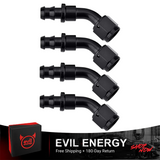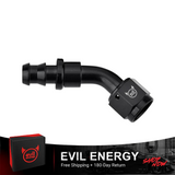 The EVIL ENERGY 45° Push Lock Hose Fitting is designed for smooth routing of rubber fuel lines, preventing kinks and ensuring reliable fuel flow.