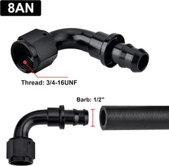 | 8AN | 1/2" Barb, Thread 3/4-16 UNF |