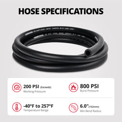 The EVIL ENERGY Push Lock Fuel Hose is engineered for universal fuel system use. Constructed from oil-resistant NBR rubber and reinforced with braided polyester, it’s SAE 30R7 rated for up to 300 PSI. This hose handles gasoline, diesel, biodiesel, and oil with ease, making it ideal for fuel lines, oil coolers, emission systems, and off-road or street performance builds. Multiple sizes and lengths available to match your setup.