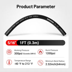 | Minimum Bend Radius | 3/8": 76mm 5/16": 64mm |