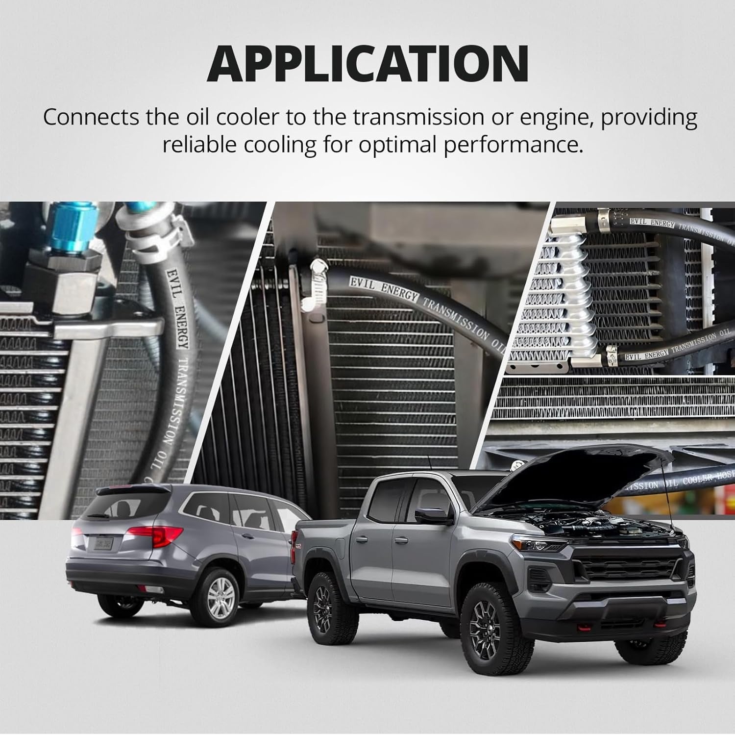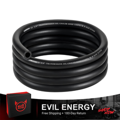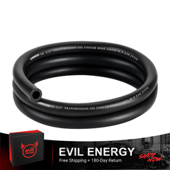 EVIL ENERGY Transmission Oil Cooler Hose delivers reliable, leak-free performance for automatic transmission and oil cooling systems. Engineered from high-strength CPE and reinforced with fiber, it resists heat, oil, and abrasion — maintaining flexibility under extreme conditions. With 250 PSI working pressure and a 1000 PSI burst rating, this hose provides dependable flow and durability for street, off-road, or high-performance builds. Designed to meet SAE J1532 standards, it’s ideal for connecting oil coolers, transmission lines, or hydraulic circuits without risk of cracking or swelling. Built to last — perfect for those who demand performance, safety, and precision.